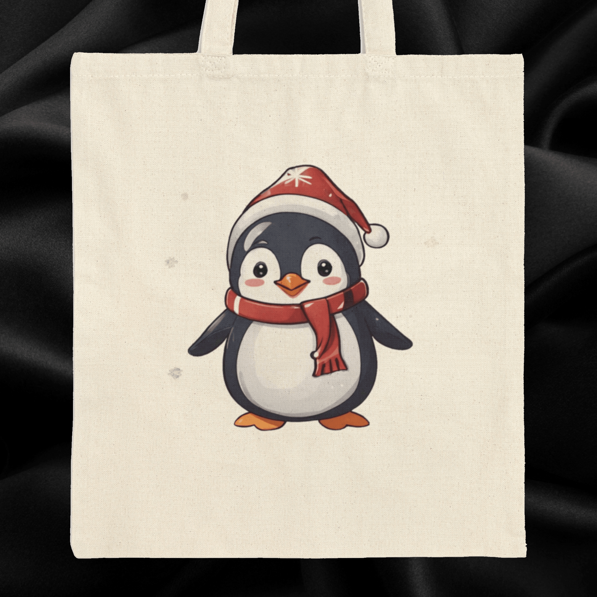 Show the world your passion for penguins with this useful and comfortable cute Christmas penguin tote bag.